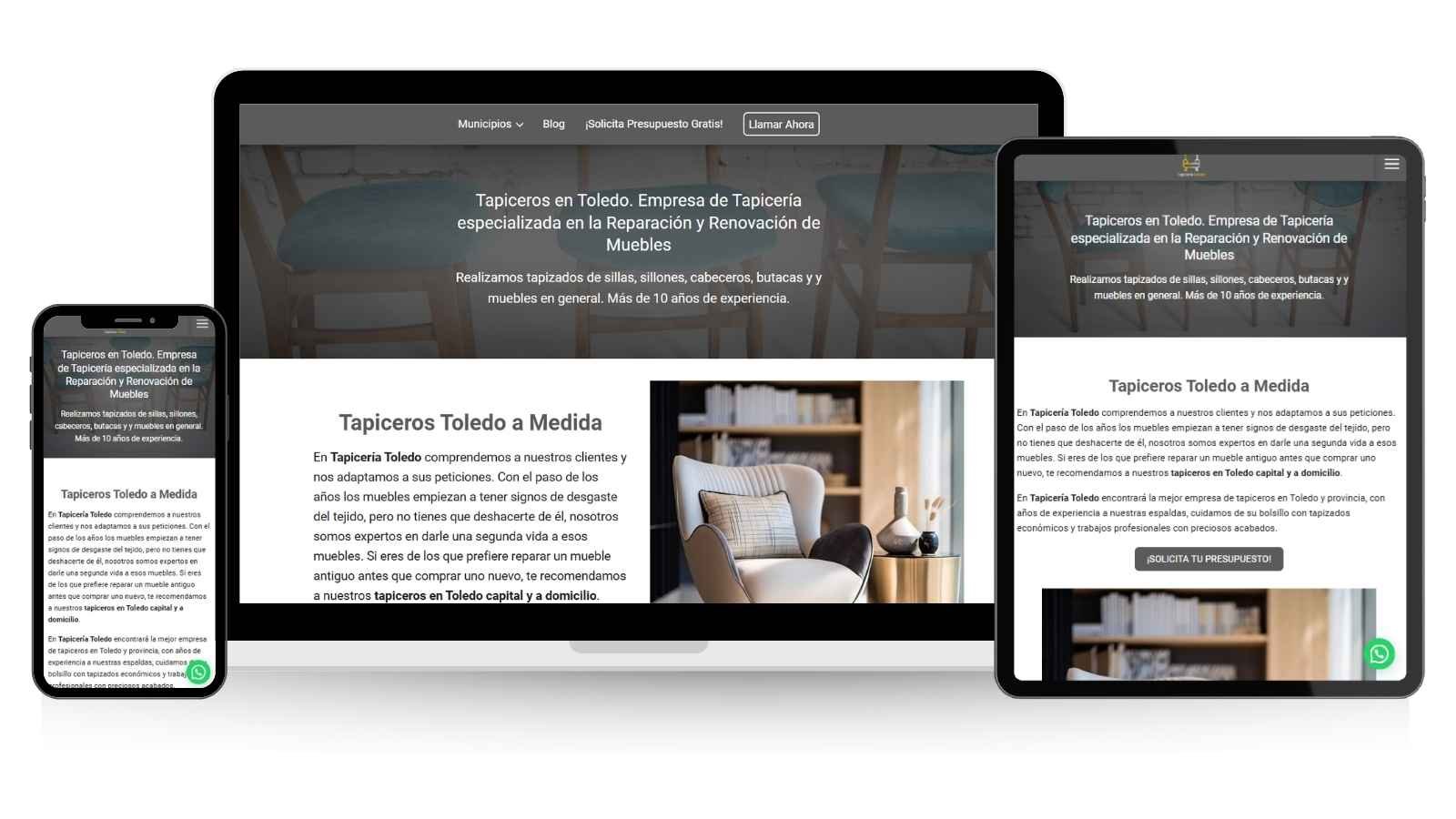Diseño web para empresa de tapicería en Toledo, con enfoque local y posicionada top 1 para su palabra clave principal.